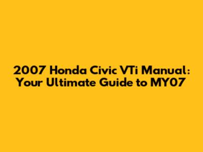 2007 Honda Civic VTi Manual: Your Ultimate Guide