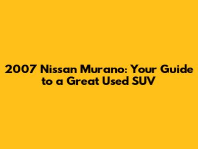 2007 Nissan Murano: Your Guide To A Great Used SUV
