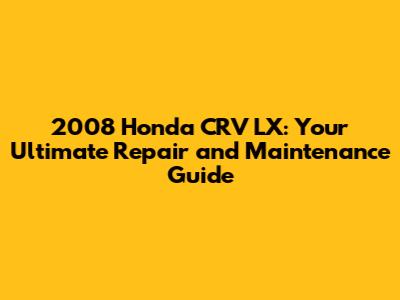 2008 Honda CRV LX: Your Guide To Repair & Maintenance