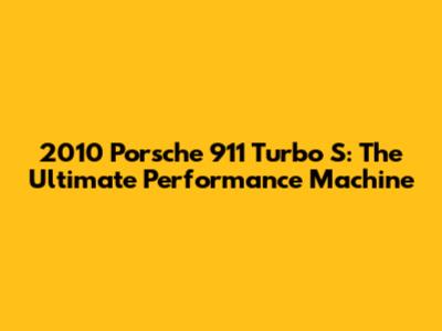 2010 Porsche 911 Turbo S: The Ultimate Performance Machine