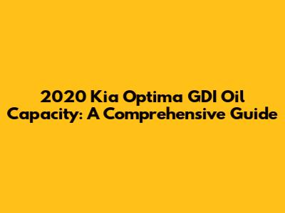 Hey there, car enthusiasts! If you're rolling with a 2020 Kia Optima GDI, you're probably wondering about its oil capacity. You've come to the right place! We're diving deep into the 2020 Kia Optima GDI oil capacity, why it matters, and everything else you need to know about keeping your engine running smoothly. Let's get started, shall we?