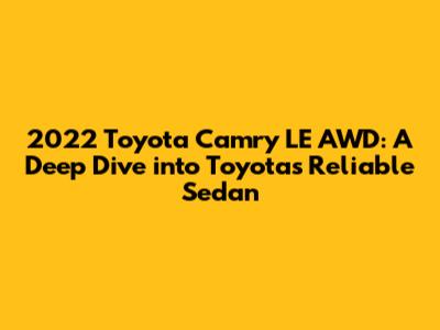 Hey car enthusiasts! Today, we're diving headfirst into the 2022 Toyota Camry LE AWD, a vehicle that's been making waves in the mid-size sedan market. This isn't just any car; it's a testament to Toyota's commitment to reliability, practicality, and now, with the addition of all-wheel drive, enhanced performance in various driving conditions. We'll be taking a comprehensive look at what makes this car tick, from its performance and fuel economy to its interior comforts and technology features. So, buckle up, grab your favorite beverage, and let's explore the ins and outs of the 2022 Camry LE AWD!