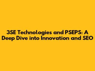 Hey guys, let's dive into the fascinating world of 3SE Technologies and how they connect with something called PSEPS, and of course, throw in some SEO talk! This article is all about giving you the lowdown on what makes these entities tick, their impact, and how they play a role in the broader landscape. I'll break it down in a way that's easy to digest, so you don't need a tech degree to follow along. So, buckle up, and let's get started!