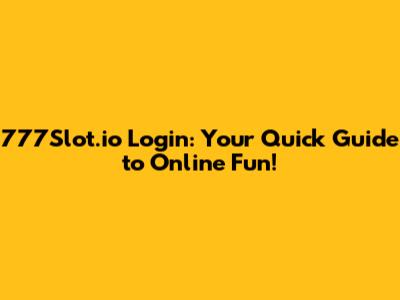 777Slot.io Login: Your Quick Guide To Online Fun!