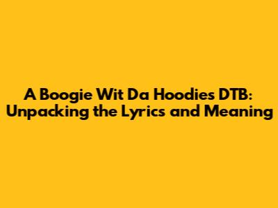 Hey everyone! Let's dive deep into one of A Boogie Wit Da Hoodie's most talked-about tracks: DTB. If you're a fan like me, you know that A Boogie always brings a unique blend of melodic rap and raw emotion to his music. In this article, we're going to break down the lyrics of DTB, exploring its meaning, the context behind the song, and the impact it's had on fans. So, grab your headphones, get comfy, and let's get started, guys!