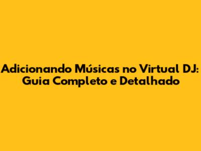 Adicionando Músicas No Virtual DJ: Guia Completo E Detalhado