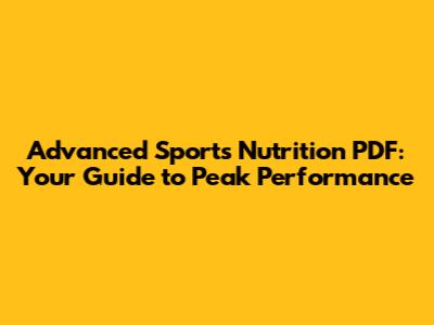 Advanced Sports Nutrition PDF: Your Guide To Peak Performance