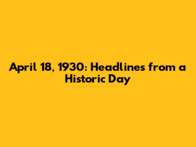 April 18, 1930: Headlines From A Historic Day