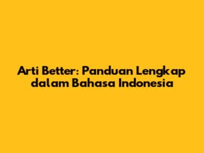Arti Better: Panduan Lengkap Dalam Bahasa Indonesia