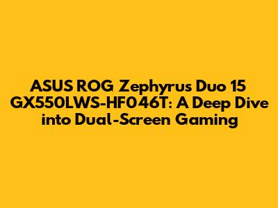 Hey guys! Let's talk about a beast of a machine, the ASUS ROG Zephyrus Duo 15 GX550LWS-HF046T. This isn't your average gaming laptop; it's a dual-screen powerhouse designed to redefine your gaming and creative experiences. If you're looking for a laptop that pushes the boundaries of performance and innovation, you've come to the right place. We're going to dive deep into what makes this laptop tick, exploring its features, performance, and whether it's the right fit for you.