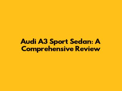 Audi A3 Sport Sedan: A Comprehensive Review