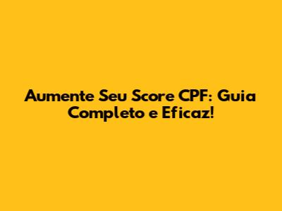 Aumente Seu Score CPF: Guia Completo E Eficaz!