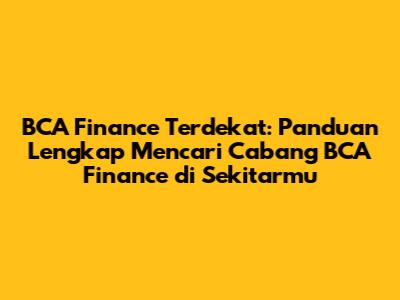 Mencari solusi finansial yang tepercaya dan terjangkau memang bisa jadi tantangan tersendiri. Nah, buat kamu yang lagi cari BCA Finance terdekat, artikel ini hadir sebagai panduan lengkap! Kita bakal kupas tuntas cara paling efektif buat nemuin kantor cabang BCA Finance di sekitar lokasi kamu, plus informasi penting lainnya yang perlu kamu tahu. Yuk, simak baik-baik!