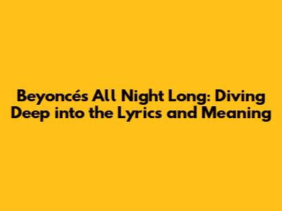 Beyoncé's 'All Night Long': Lyrics & Meaning Explained