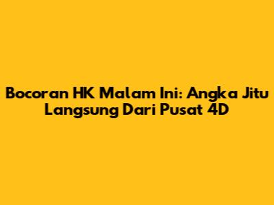 Bocoran HK Malam Ini: Angka Jitu Langsung Dari Pusat 4D