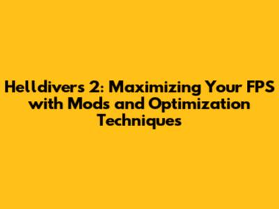 Boost Helldivers 2 FPS: Mods, Tweaks & Optimization Guide