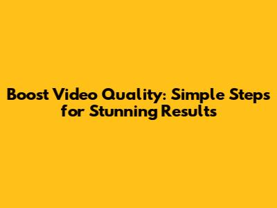 Boost Video Quality: Simple Steps For Stunning Results