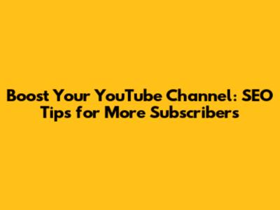Boost Your YouTube Channel: SEO Tips For More Subscribers