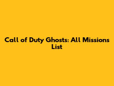 Call Of Duty Ghosts: All Missions List