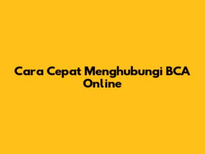 Cara Cepat Menghubungi BCA Online