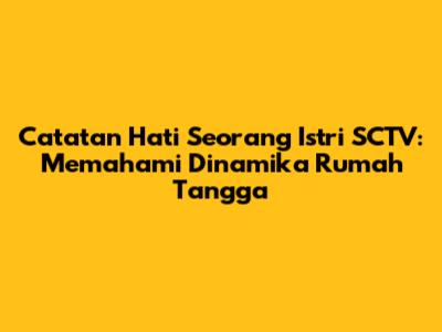 Catatan Hati Seorang Istri SCTV adalah sebuah sinetron yang berhasil mencuri perhatian banyak pemirsa di Indonesia. Bagi kalian yang sering menonton SCTV, pasti sudah tidak asing lagi dengan cerita yang satu ini. Sinetron ini tidak hanya menyajikan hiburan semata, tetapi juga mengangkat berbagai isu dan dinamika yang terjadi dalam kehidupan rumah tangga. Dari mulai masalah perselingkuhan, konflik keluarga, hingga perjuangan seorang istri dalam mempertahankan keutuhan rumah tangga, semua tersaji dengan apik dalam setiap episodenya. Mari kita bedah lebih dalam mengenai sinetron ini, mulai dari kisah, ulasan, hingga pengalaman yang bisa kita ambil.