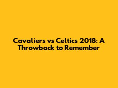 Cavaliers Vs Celtics 2018: A Throwback To Remember