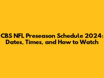 CBS NFL Preseason Schedule 2024: Dates, Times, And How To Watch