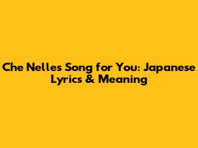 Che Nelle's Song For You: Japanese Lyrics & Meaning