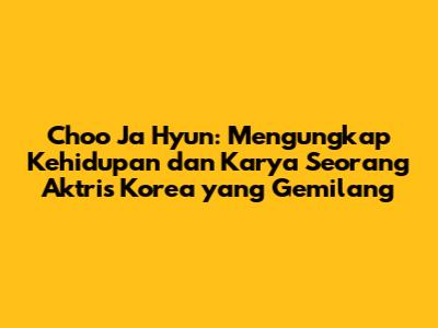 Choo Ja Hyun: Aktris Korea Selatan Yang Memukau