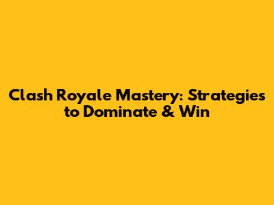 Clash Royale Mastery: Strategies To Dominate & Win