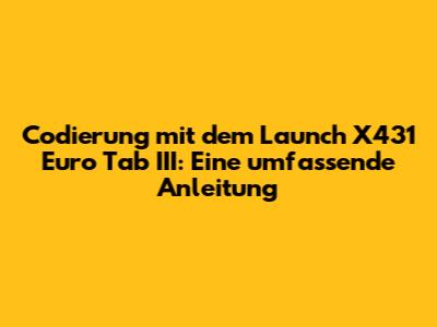 Codierung Mit Dem Launch X431 Euro Tab III: Eine Umfassende Anleitung