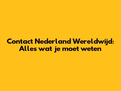 Contact Nederland Wereldwijd: Alles Wat Je Moet Weten