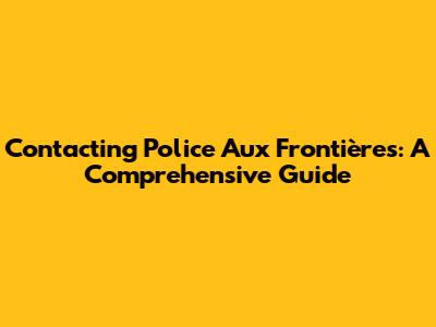 Contacting Police Aux Frontières: A Comprehensive Guide