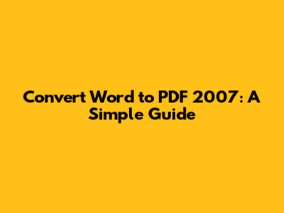 Convert Word To PDF 2007: A Simple Guide