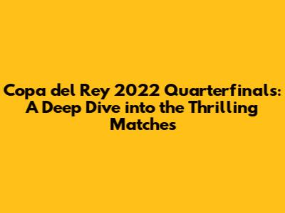 Copa Del Rey 2022 Quarterfinals: Epic Battles And Unforgettable Moments