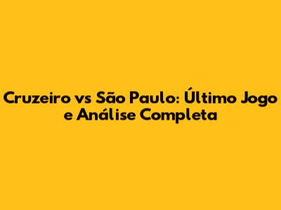 Cruzeiro Vs São Paulo: Último Jogo E Análise Completa