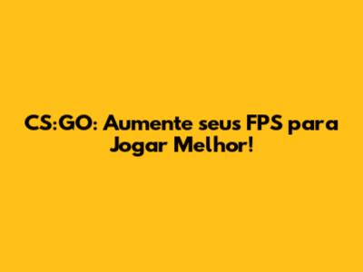 CS:GO: Aumente Seus FPS Para Jogar Melhor!