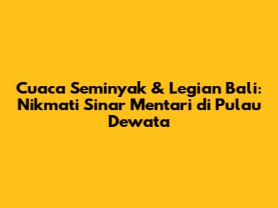 Cuaca Seminyak dan Legian Bali adalah topik yang krusial bagi kalian yang berencana liburan ke surga dunia ini. Guys, siapa sih yang gak pengen liburan ke Bali? Pastinya semua orang pengen kan? Nah, sebelum kalian packing koper dan siap-siap berjemur di pantai, penting banget buat ngecek cuaca di Seminyak dan Legian. Kedua pantai ini merupakan destinasi favorit para turis karena keindahan alamnya yang memukau. Jadi, mari kita bahas secara mendalam mengenai cuaca di dua lokasi ini, agar liburanmu di Bali semakin berkesan!