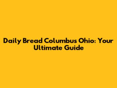 Daily Bread Columbus Ohio: Your Ultimate Guide