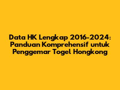 Hey guys! Kalau kalian adalah penggemar togel Hongkong (HK) atau yang biasa disebut Toto HK, pasti udah gak asing lagi dengan istilah Data HK. Nah, artikel ini adalah sumber terlengkap yang kalian butuhkan! Kita bakal bahas tuntas tentang Data HK lengkap dari tahun 2016 sampai 2024. Penasaran kan? Yuk, kita mulai!