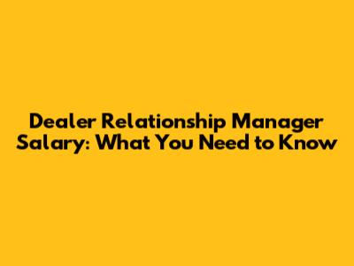 Dealer Relationship Manager Salary: What You Need To Know