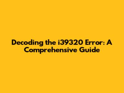 Decoding The I39320 Error: A Comprehensive Guide