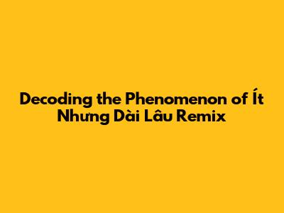 Decoding The Phenomenon Of Ít Nhưng Dài Lâu Remix