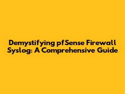 Demystifying PfSense Firewall Syslog: A Comprehensive Guide
