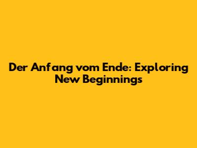 Der Anfang Vom Ende: Exploring New Beginnings