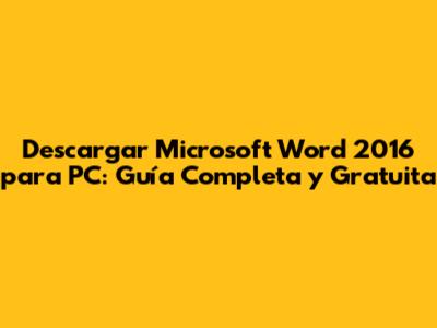 Descarga Microsoft Word 2016 Para PC: Guía Completa Y Gratuita