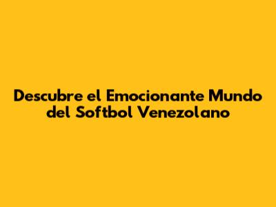 Descubre El Emocionante Mundo Del Softbol Venezolano