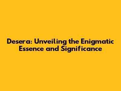Desera: Unveiling The Enigmatic Essence And Significance