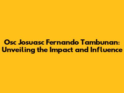 Hey guys! Ever stumbled upon a name and wondered, "Who is this person and what makes them tick?" Today, we're diving deep into the world of Osc Josuasc Fernando Tambunan. This isn't just a name; it represents a journey, a set of accomplishments, and a unique influence. So, buckle up as we explore the various facets of Osc Josuasc Fernando Tambunan, piecing together a comprehensive picture that highlights their contributions and significance. Whether you're a long-time follower or just getting acquainted, there's something here for everyone. We'll explore their professional endeavors, personal milestones, and the overall impact they've had on their community and beyond. Let's get started and uncover the story behind the name!