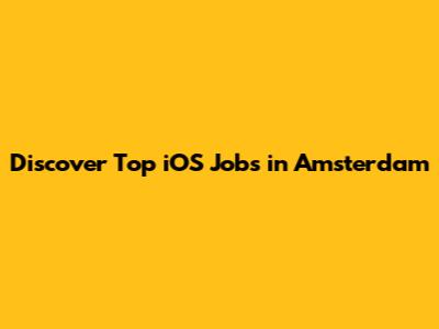 Discover Top IOS Jobs In Amsterdam